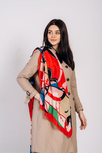 Віскозний шарф сезону весна-осінь. Універсальний дизайн з абстрактним принтом і необробленою кромкою. Напівпрозора м'яка тканина. Чудово підійде для прохолодної і вітряної погоди. У наявності твої улюблені кольори!