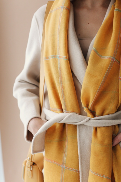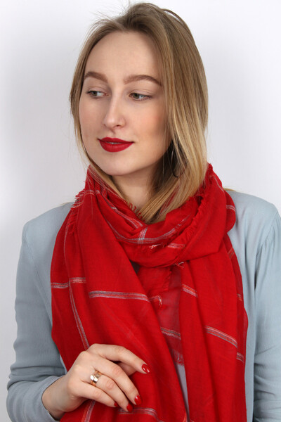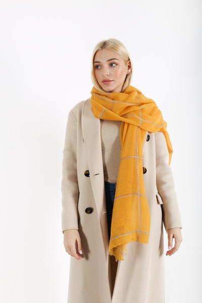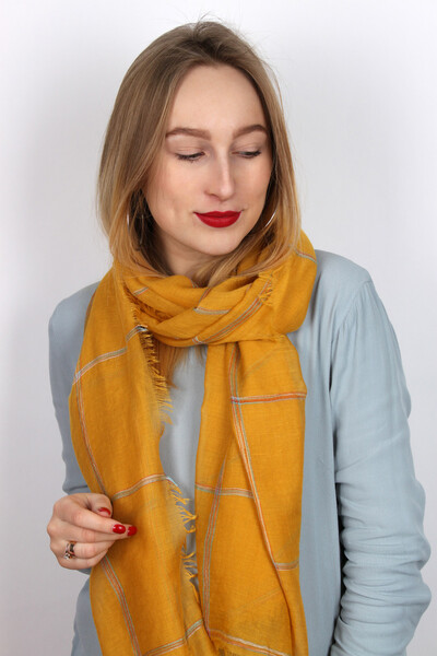 Ідеальний легкий шарф. Однотонний дизайн з тонкими вертикальними і горизонтальними смугами. Необроблені кромки. Об'ємний, його можна намотати навколо шиї або накинути на голову. Як тобі?