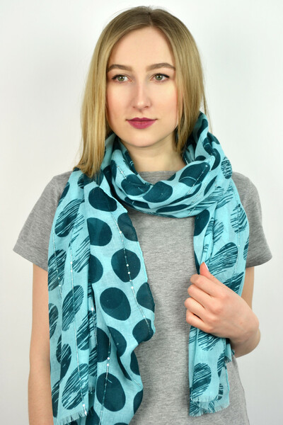 • Весняний шарф у великий горошок. Легкий напівпрозорий матеріал, дизайн з блискучими паєтками та ефектом потертості, необроблені кромки. Оптимальний розмір, який дозволить створювати образи на будь-який смак. Як тобі?