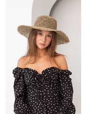 Широкополий капелюх виконаний із соломи. Такий матеріал виглядає ефектно і незвично. Головні убори із соломи майже невагомі, їх комфортно носити. Солома повністю екологічний та безпечний для здоров'я матеріал.