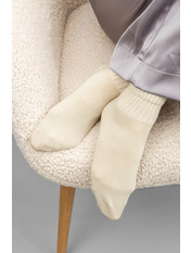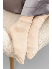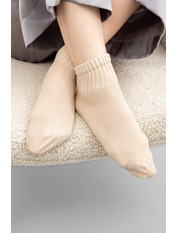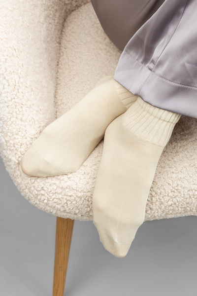 - Зручні та м'які на дотик, вони не створюють дискомфорту під час тривалого носіння, завдяки еластичній гумці, яка не перетискає ногу.