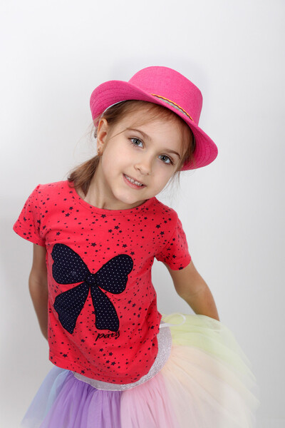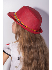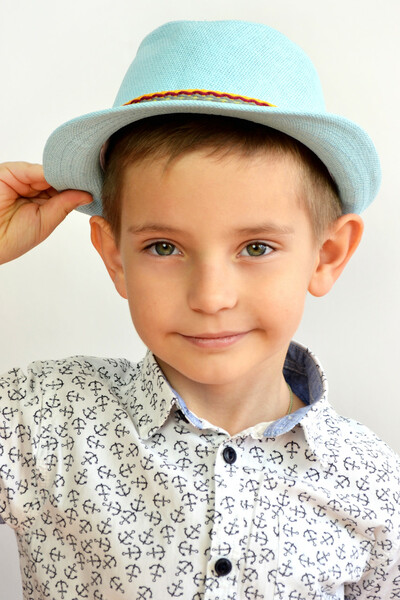 Дитячий капелюшок челентанка на літо. Яскраві кольори, увігнута тулія прикрашена контрастною стрічкою, загнуті вгору поля. Капелюх виготовлений зі спеціального паперу, який не парить і добре тримає форму. Ідеальний аксесуар для міських прогулянок і пляжного відпочинку!