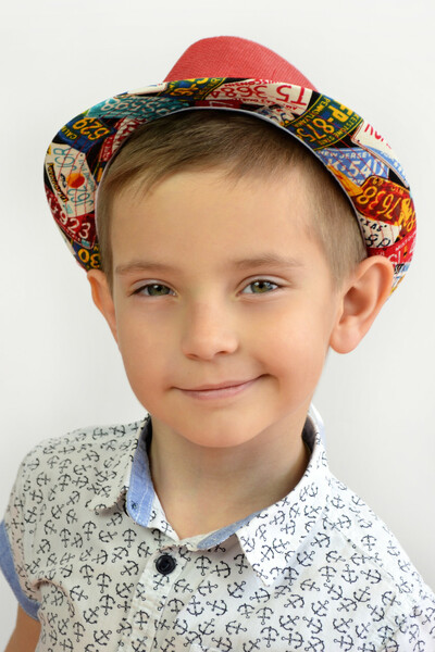 • Дитячий капелюшок челентанка для міських прогулянок. Насичені кольори, контрастний дизайн з яскравим принтом, загнуті догори поля, увігнута тулія. Капелюх виготовлений ​​з просоченого паперу, який не парить і добре тримає форму. Чудовий захист від сонця!