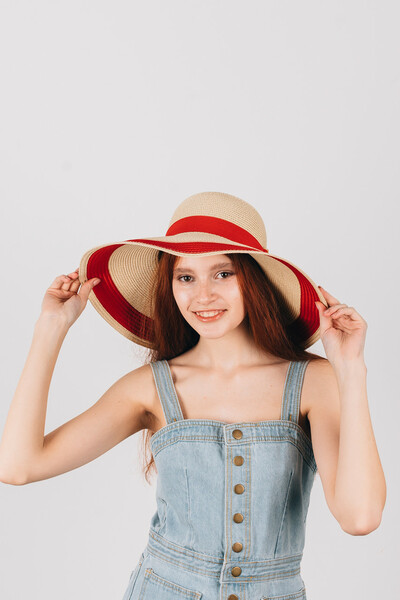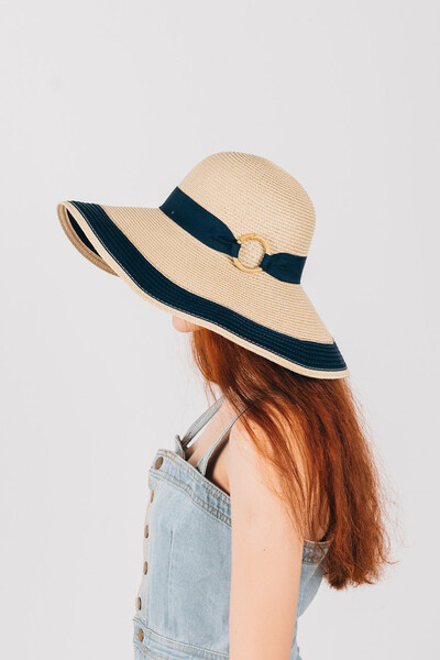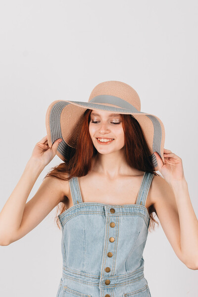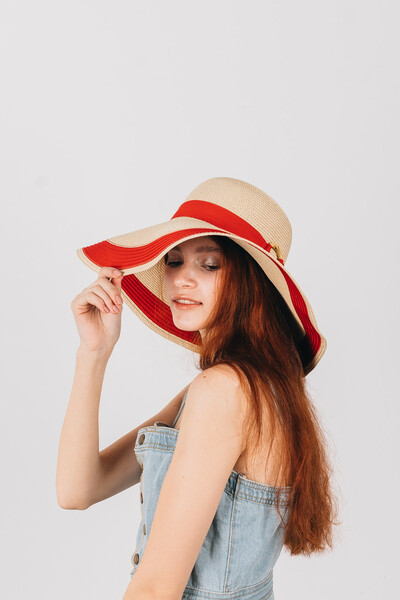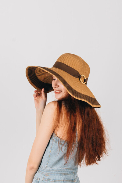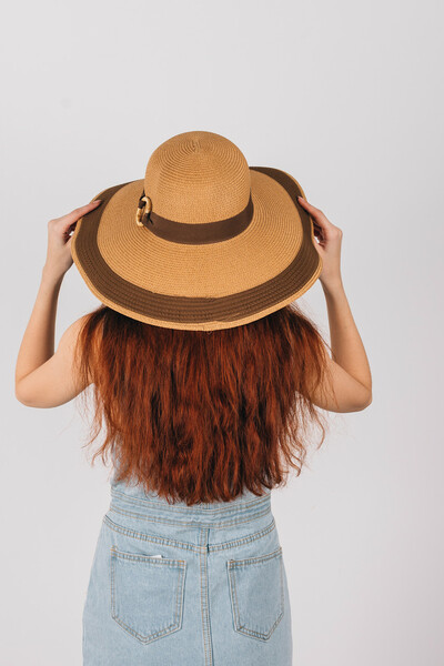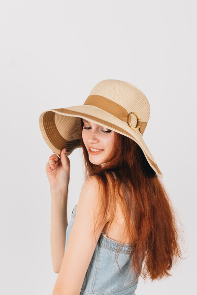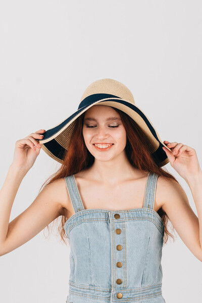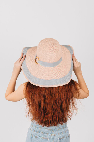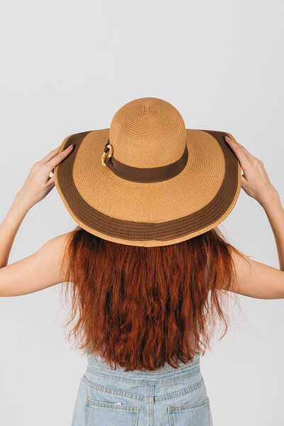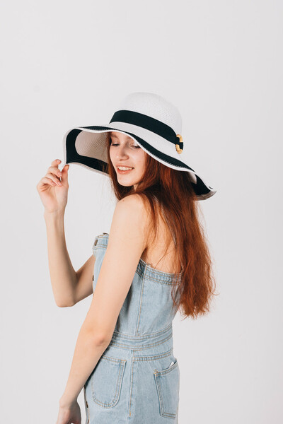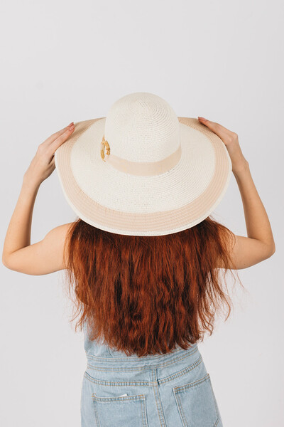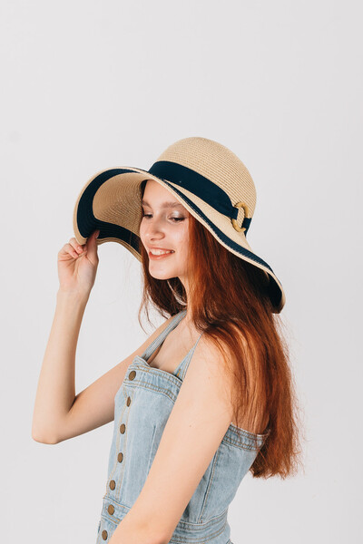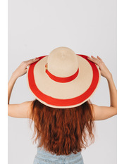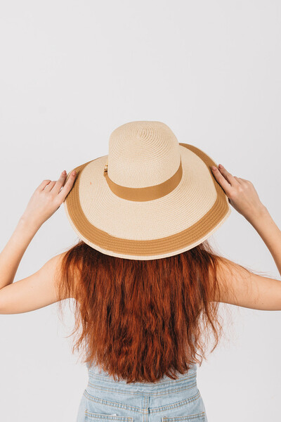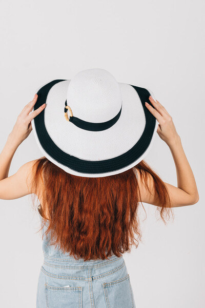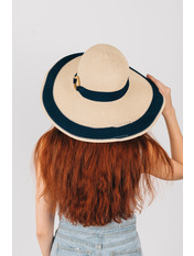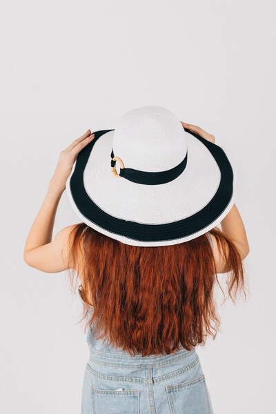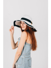 Широкополий капелюх для літнього гардеробу. Двоколірний дизайн, напівсферична тулія з широкою стрічкою і колечком у тон. Тонкий і дихаючий матеріал, не парить і не втрачає форму. Розмір регулюється. Замовляй!