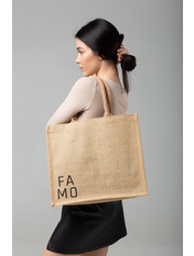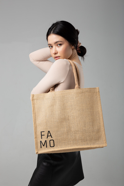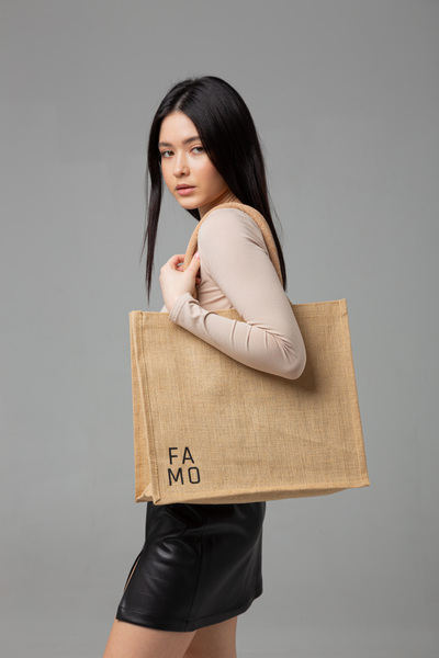 Шоппер виконаний з натурального джуту. Цей матеріал виготовляється з рослин і широко споживається у всьому світі. Вироби з джуту легкі, міцні та мають цікаву волокнисту структуру.