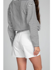 - Сушити шорти краще на свіжому повітрі, уникаючи прямих сонячних променів, оскільки вони можуть спричинити пожовтіння білої тканини. Розкладіть виріб горизонтально або повісьте на плічки, щоб уникнути деформації.