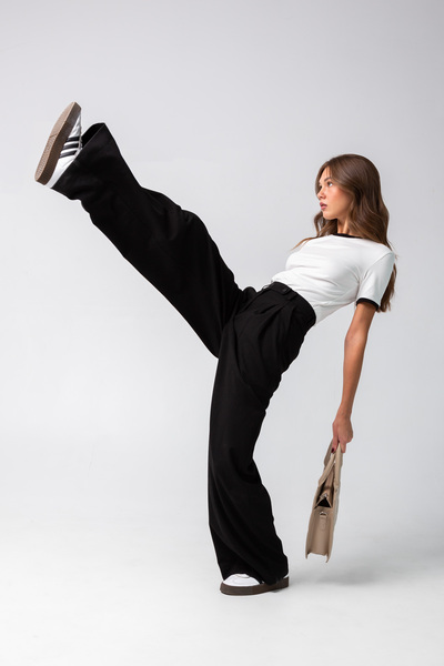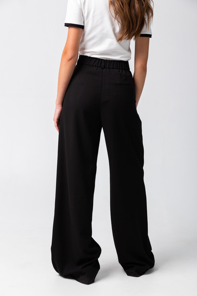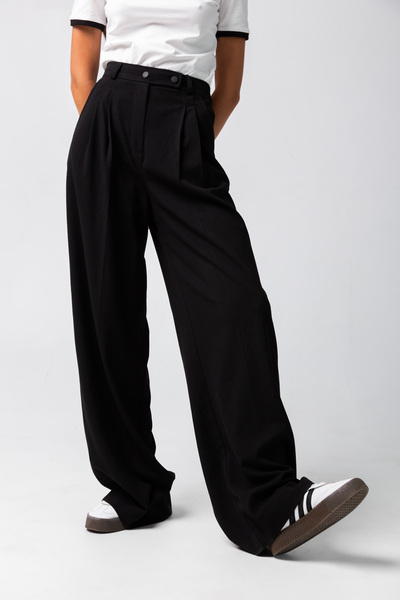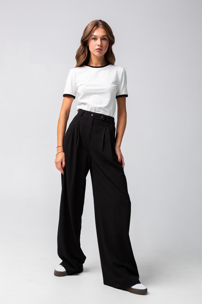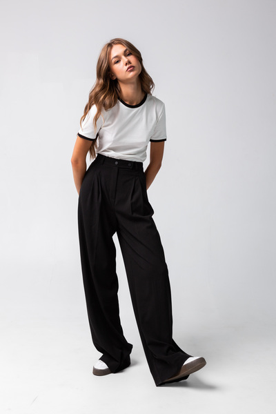 Класичні штани з костюмної тканини – це ідеальний варіант для роботи та навчання. Ця модель у базових кольорах чудово комбінується з водолазками, блузами та класичними піджаками.