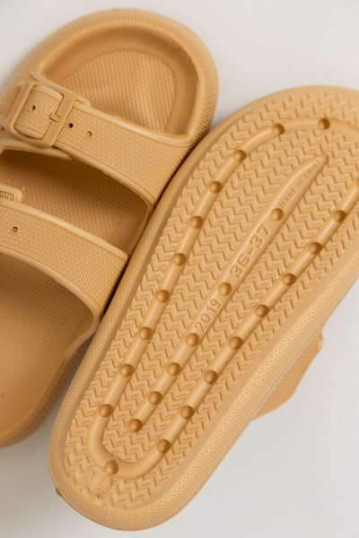 - Протиковзка підошва: Сланці мають спеціальну підошву, що запобігає ковзанню на вологих поверхнях, таких як плитка в басейні або пляжний пісок.