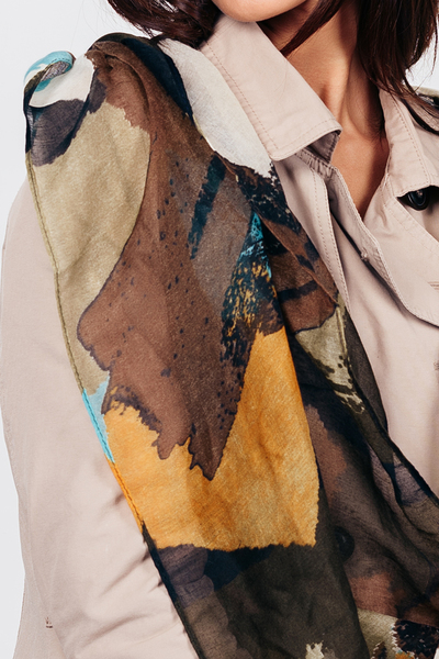 Стильний хомут з віскози. Переливи барв, універсальний дизайн, м'яка напівпрозора тканина. Його можна обмотати навколо шиї, а при бажанні, і накинути на голову. Як тобі такий аксесуар?