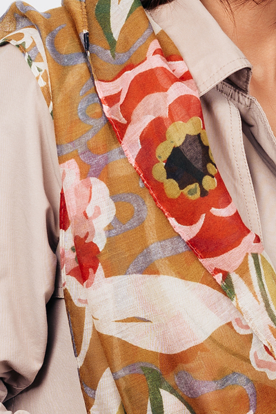 • Легкий снуд з віскози. Яскравий квітковий дизайн, напівпрозора ніжна тканина. Оптимальний розмір, завдяки якому аксесуар можна носити як хустку. Ідеально поєднується з пальтом або тренчем. Замовляй!