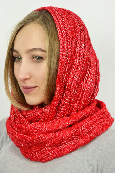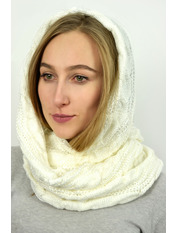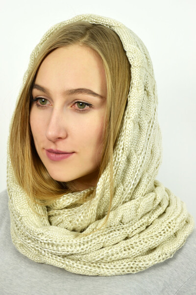 Теплий снуд з люрексовою ниткою. Класичний візерунок "коси" та об'ємна в'язка. М'яка і тепла тканина, у складі вовна та акрил. Цей аксесуар можна накинути на голову або обмотати навколо шиї. Головне, щоб тобі було комфортно!