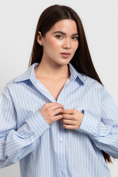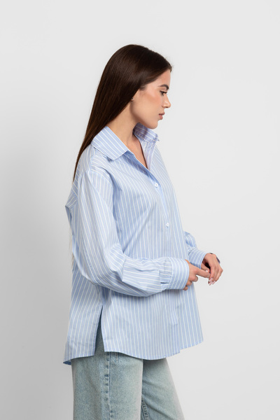 - Витончені блакитні смужки на світлому фоні створюють свіжий та акуратний вигляд.