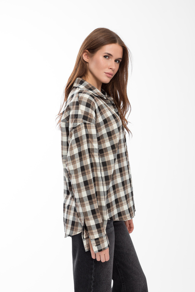 • Сорочка в клітинку  RA-171 XS/S Бежевий + чорна клітинка Бежевий Бежевий + чорна клітинка XS/S