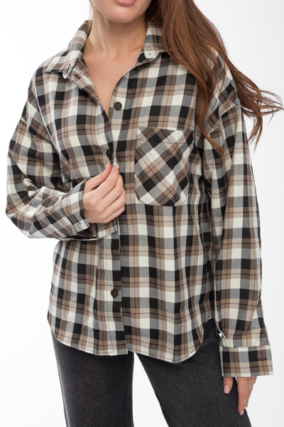 • Сорочка в клітинку  RA-171 M/L Бежевий + чорна клітинка Бежевий Бежевий + чорна клітинка M/L