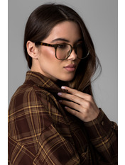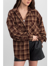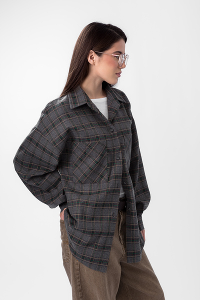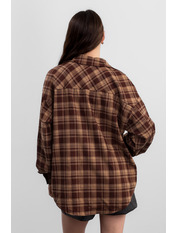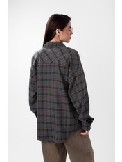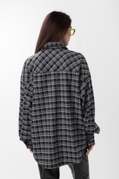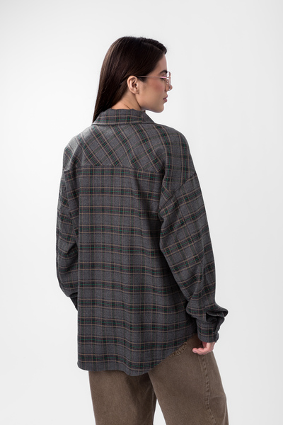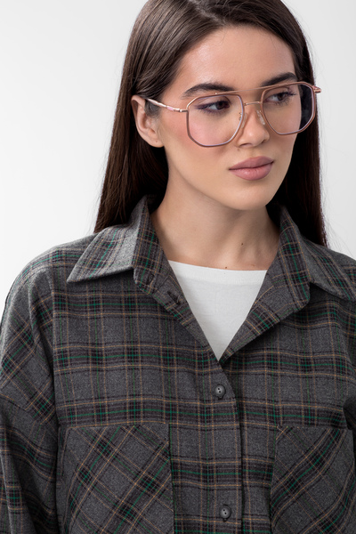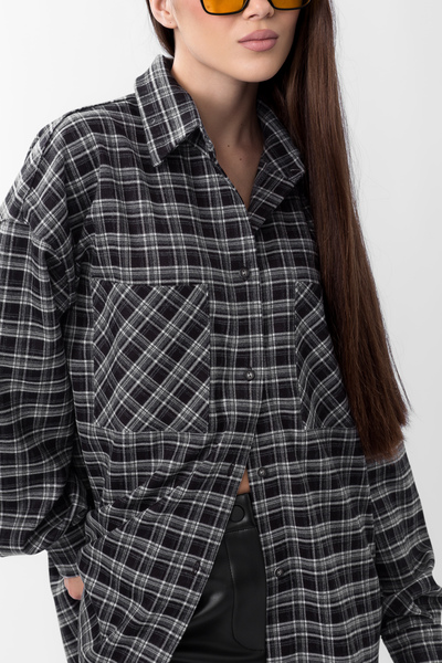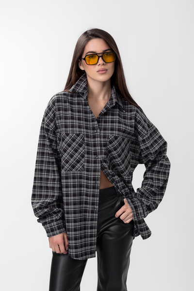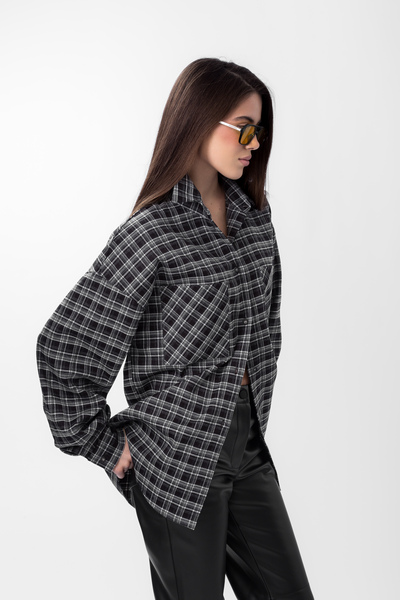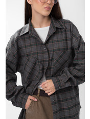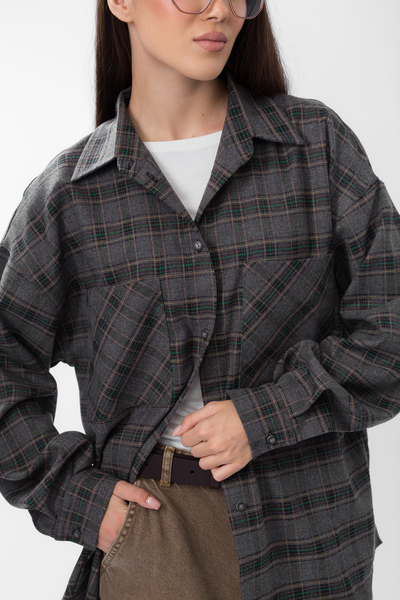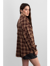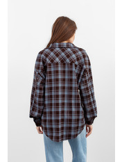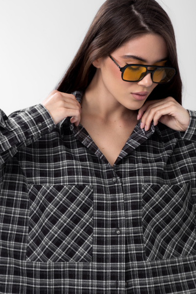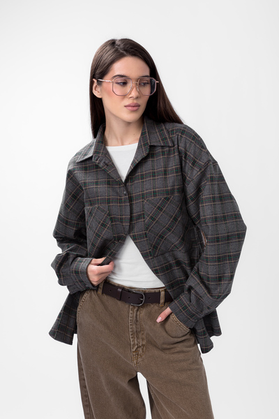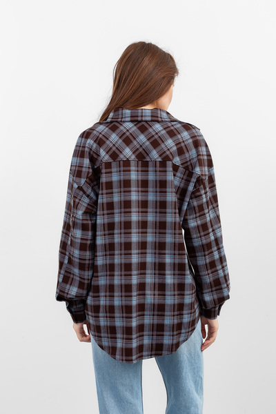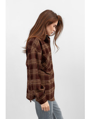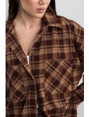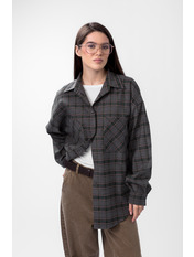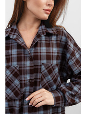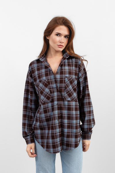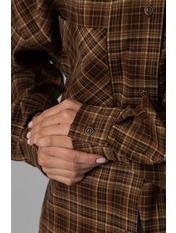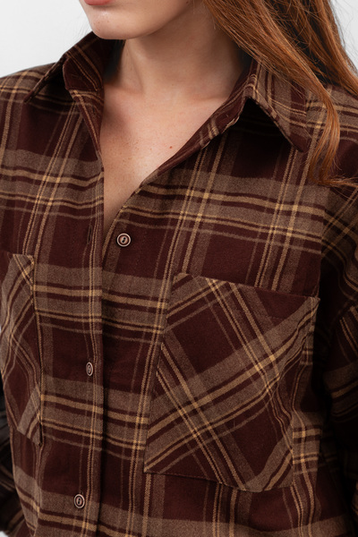 - Класична клітинка в коричневих та бежевих тонах робить цю сорочку універсальною для різноманітних образів.