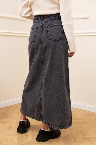 Довга спідниця вільного крою має трапецієподібну форму. Є дві бічні та дві задні кишені. Застібається спідниця на ґудзик та замок. Базові кольори спідниці чудово комбінуються з будь-яким верхом та взуттям.Як доглядати