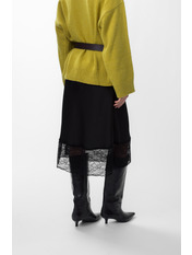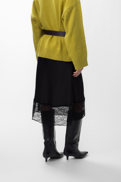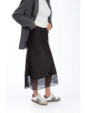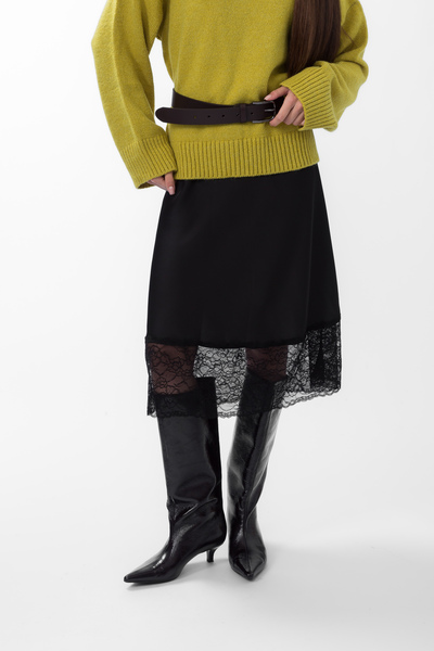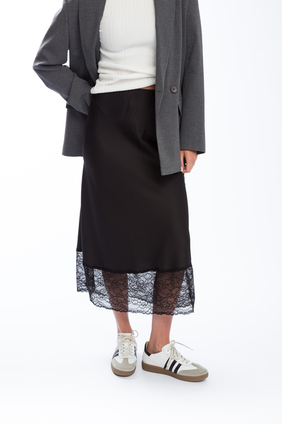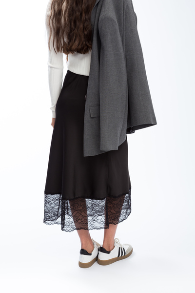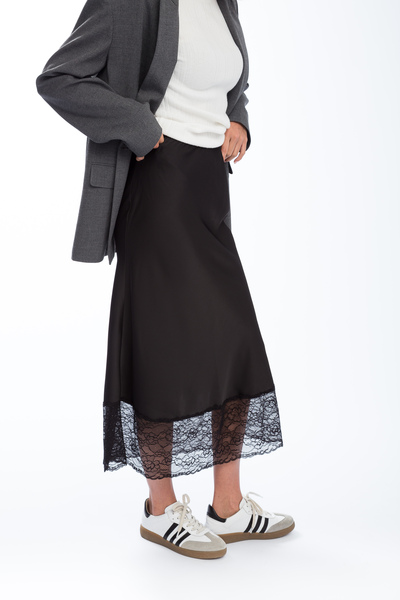 - Класичний чорний колір робить спідницю надзвичайно універсальною. Вона легко поєднується з різними верхами — від строгих сорочок до ніжних блуз та повсякденних футболок, дозволяючи створювати безліч образів.