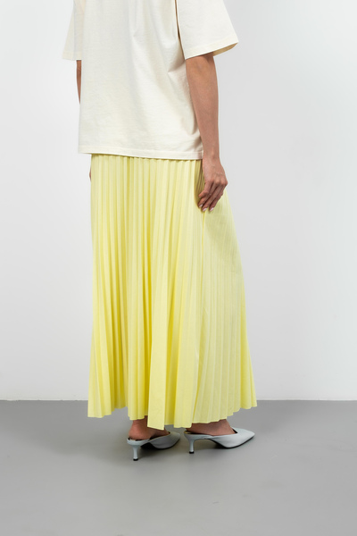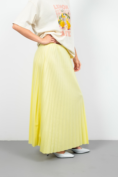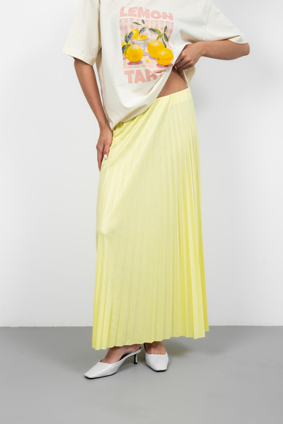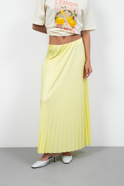 Спідниця U-251008 у яскравому лимонному кольорі створена для тих, хто цінує легкість, комфорт і стильний вигляд у повсякденному житті.