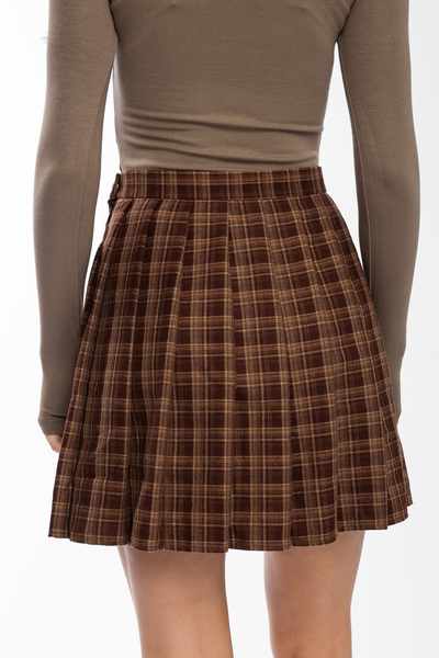 • Спідниця пліссе U-333 Коричневий + жовта клітинка Коричневий Коричневий + жовта клітинка S S
