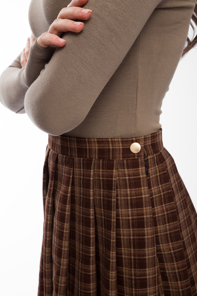 • Спідниця пліссе U-333 Коричневий + жовта клітинка Коричневий Коричневий + жовта клітинка M M