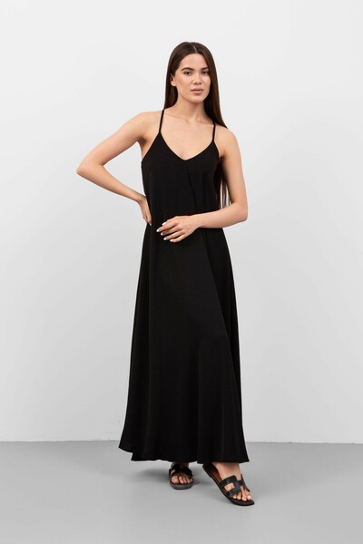 • Сукня максі з віскози без рукавів PLA-2907 M/L Чорний Чорний M/L