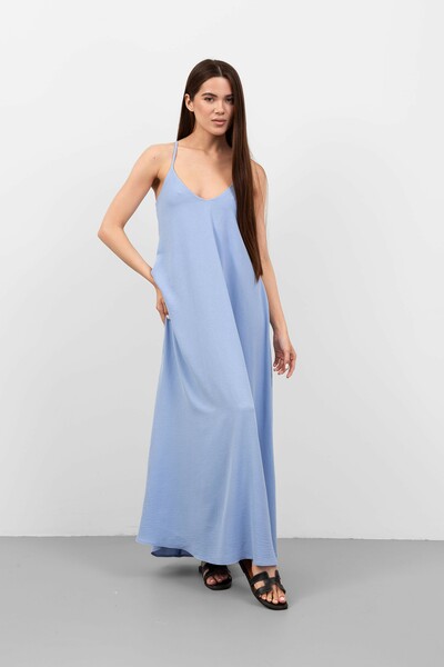 • Сукня максі з віскози без рукавів PLA-2907 M/L Блакитний Блакитний M/L
