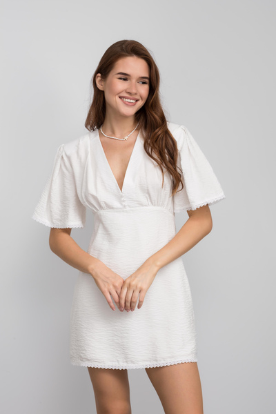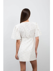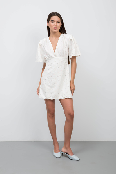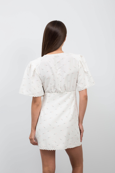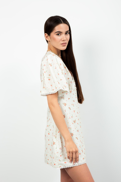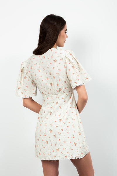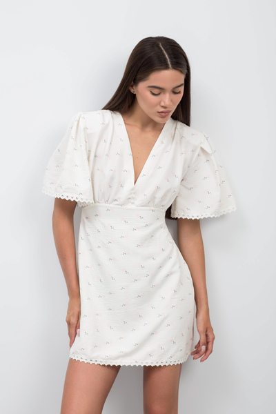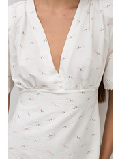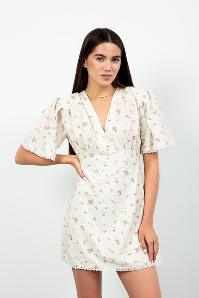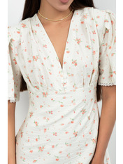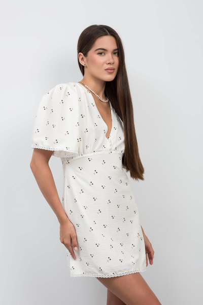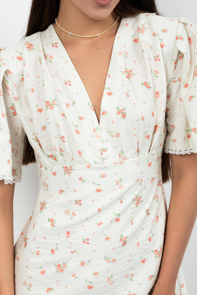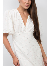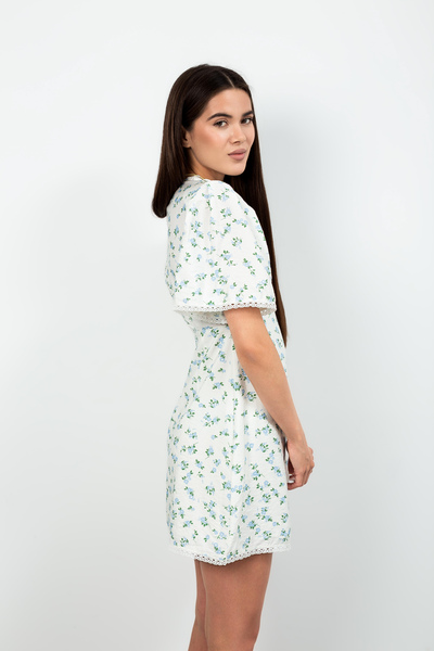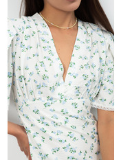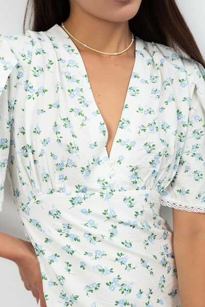 Ця сукня вигідно підкреслить вашу фігуру, зробить образ більш ніжним та жіночним.Комбінація молочного відтінку з елегантним візерунком блакитних квітів створює гармонійний та свіжий вигляд, який ідеально підходить для теплої пори року, а крій плаття і вільною спідницею подарує комфорт і легкість протягом усього дня.