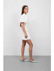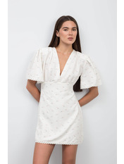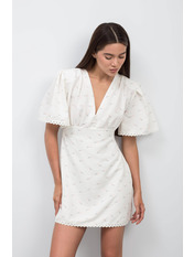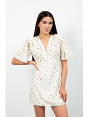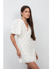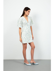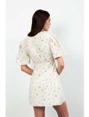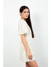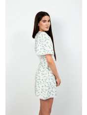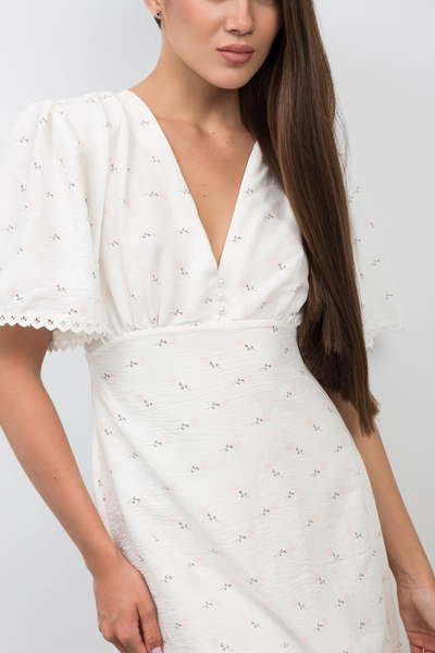 Напівприталена сукня моделі PLA-883 в молочному кольорі з блакитними квітами – це втілення витонченості та легкість.