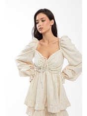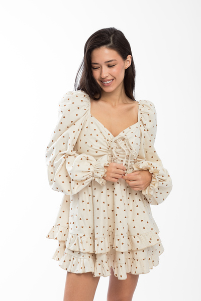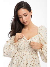- Особливості: Квітковий принт, рукава-ліхтарики, акцент на талії