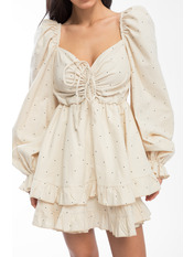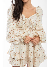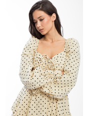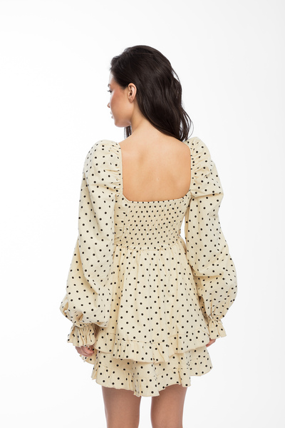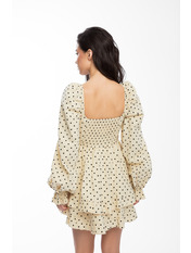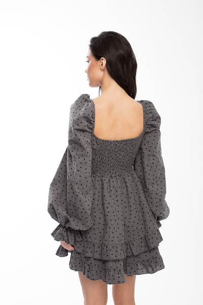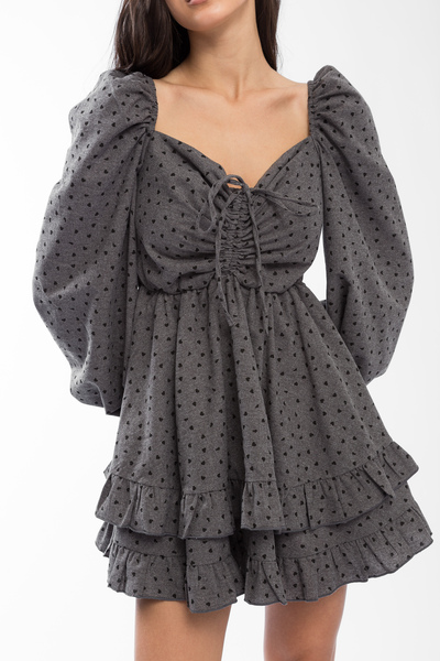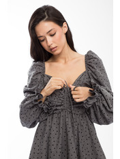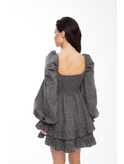 Зачаруй усіх своєю ніжністю в цій сукні міді з квітковим принтом. М'яка бавовна подарує комфорт, а витончений крій підкреслить твою жіночність. Рукава-ліхтарики додають образу романтичності.