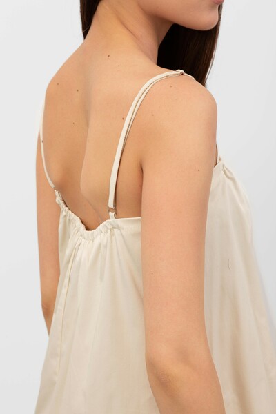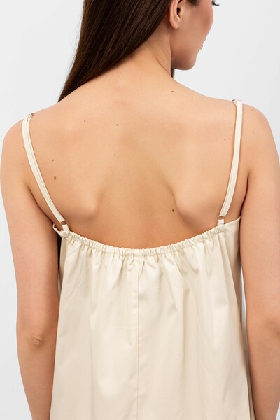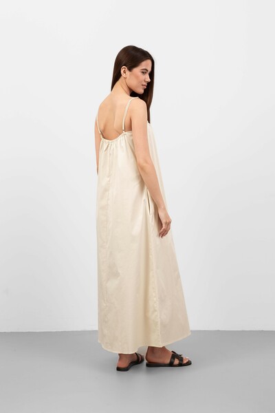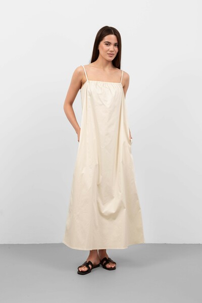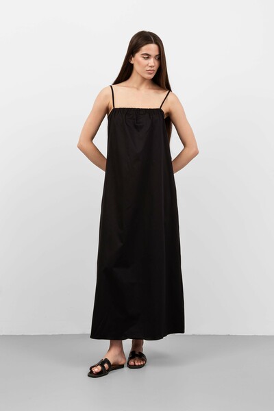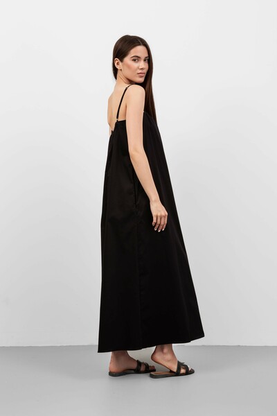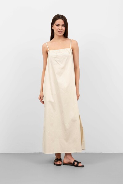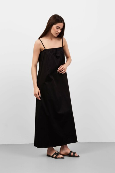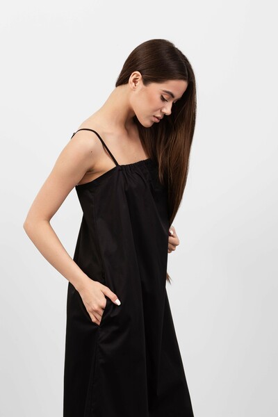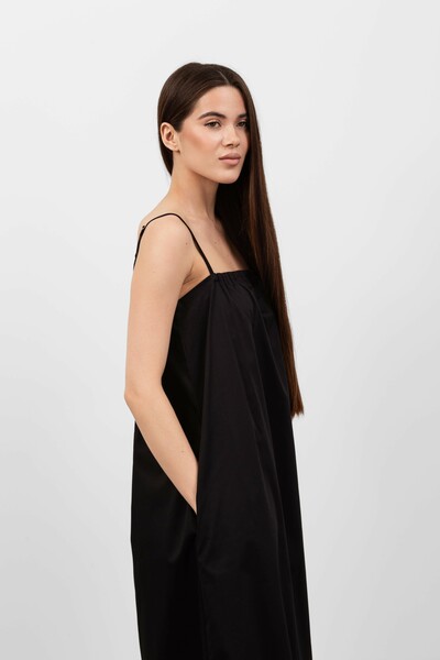 Ця модель вражає своїм вільним кроєм, що забезпечує свободу рухів і комфорт, а також підкреслює жіночність. Сукня виготовлена з легкого матеріалу, який приємно доторкатися до тіла і має хорошу повітропроникність, що робить її ідеальною для теплої погоди.