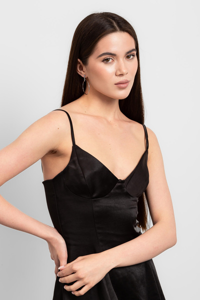 - Тканина сатин має ніжну текстуру з легким блиском, що додає сукні розкоші;