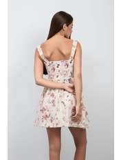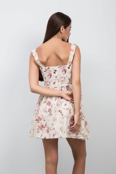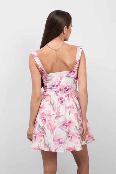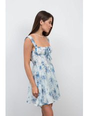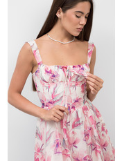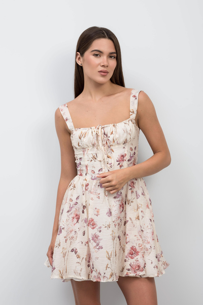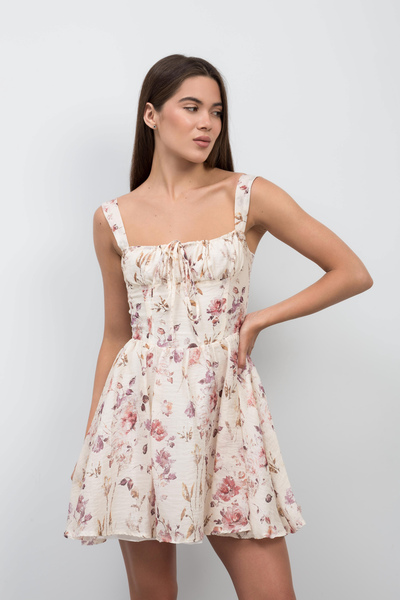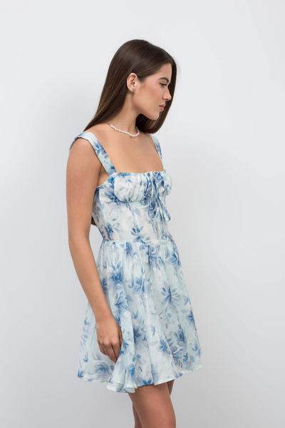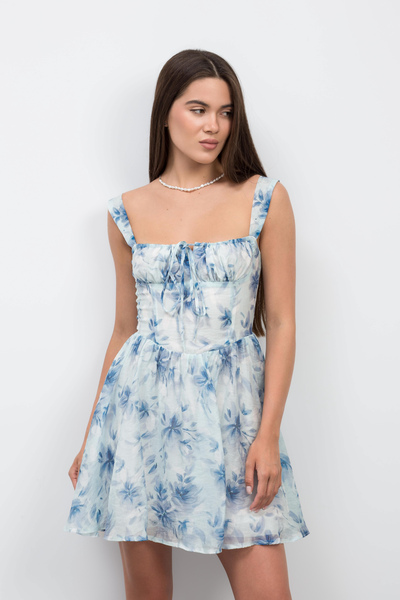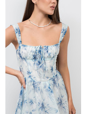 Ця сукня з віскози напівприталеного силуету – ідеальний вибір для тих, хто цінує комфорт, стиль та якість. Виготовлена з натуральної віскози, вона приємна до тіла, дихаюча та дозволяє шкірі дихати навіть у спекотну погоду. Молочний колір у поєднанні з ніжним принтом блакитних квітів створює романтичний та елегантний образ.