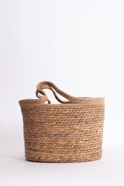 Декоративний кошик: 100% солома. У жовтих та коричневих відтінках.