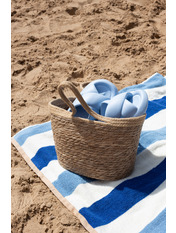 Модець середнього розміру, за рахунок грубого плетення соломи, сумка чудово тримає форму. У моделях такого типу є допустимі нерівності в плетенні та в формі. Сумка виконана з соломи, з трикотажними ручками.