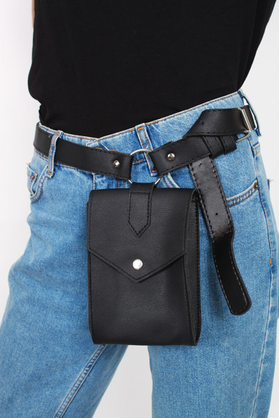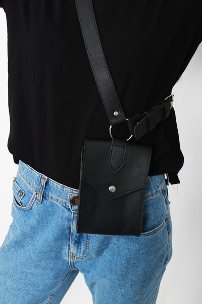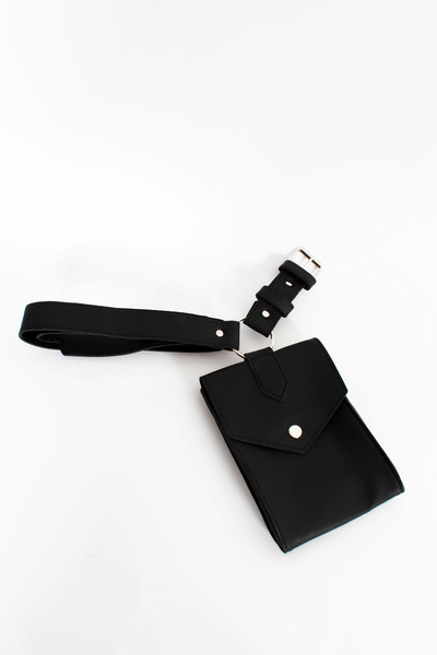 Трендовая сумка на пояс або ремінь-сумка. Матова гладка поверхня в чорному кольорі. Одне відділення на кнопці, регульований ремінець. Модель можна носити на поясі, замість ременя або через плече. Як тобі?
