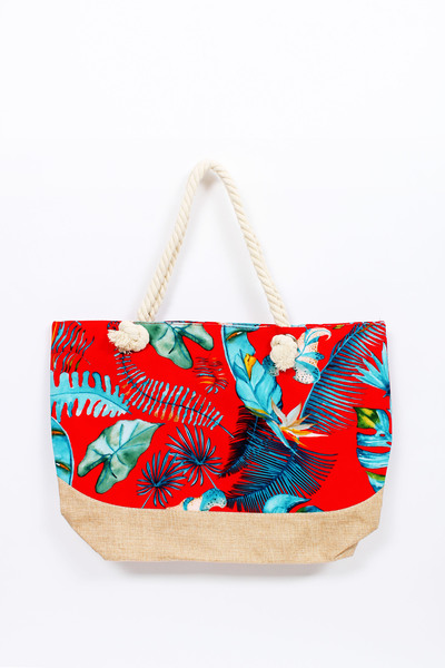 • Яскрава пляжна сумка з рослинним принтом. Низ оброблений мішковиною, основне відділення на блискавці, внутрішню кишеню для дрібниці. Довгі міцні ручки-канати. Ідеальна для пляжного відпочинку. Замовляй!