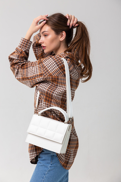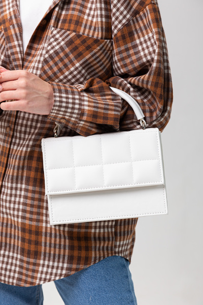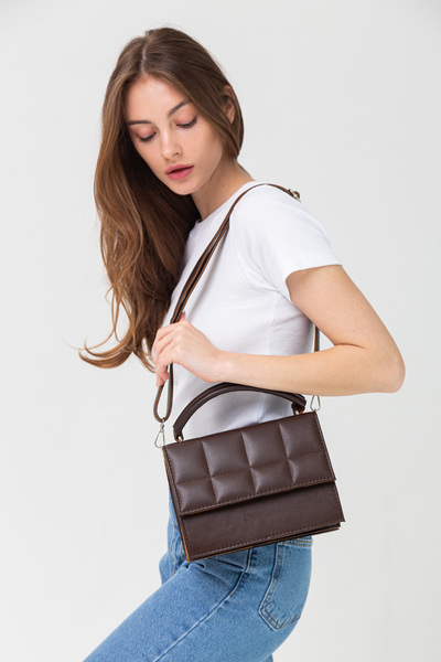 Ця сумка представлена в однотонному стриманому дизайні. Верх виробу, який закриває відділення, стьобаний квадратами.Як доглядати