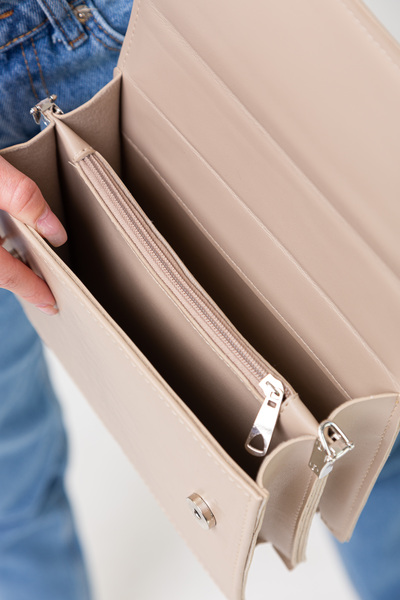 Завдяки трьом відділенням у цю невелику сумку легко вмістити всі необхідні у повсякденні речі. Сумка має одну ручку та плечовий ремінь, який можна від'єднати. Застібається ця модель за допомогою блискавки та двох магнітних кнопок.