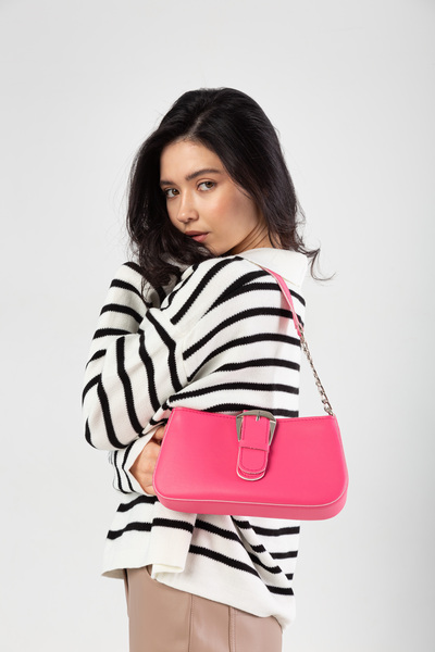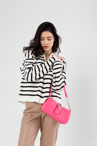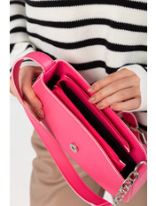 • ФуксіяСумка виконана з еко-шкіри. Цей якісний матеріал володіє чудовими властивостями: стійкість до зношування, міцність, естетичний зовнішній вигляд. На відміну від натуральної шкіри, еко-шкіра коштує значно менше та її виробництво не шкодить тваринкам.