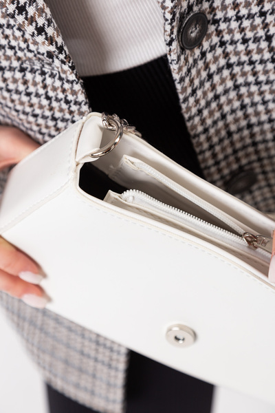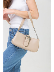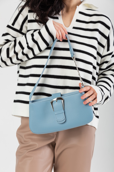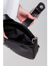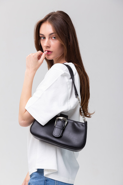 Компактна сумка прямокутної форми має один плечовий ремінь. Ця модель має одне основне відділення, яке застібається за допомогою блискавки. Також сумка має оригінальну декоративну пряжку, яка закріплюється за допомогою кнопки.Як доглядати