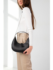 • ЧорнийСумка виконана з еко-шкіри. Якісна еко-шкіра міцна, стійка до зношування та має привабливий естетичний вигляд. Цей матеріал є чудовим замінником натуральної шкіри, оскільки він коштує менше та не шкодить тваринам.