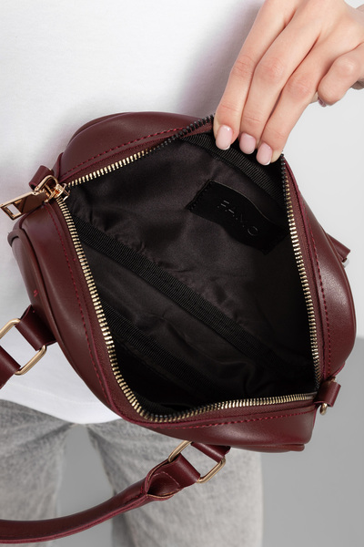 - Дизайн у кольорі бургунді робить цю сумку універсальною, здатною підкреслити індивідуальність власниці.