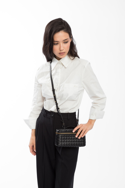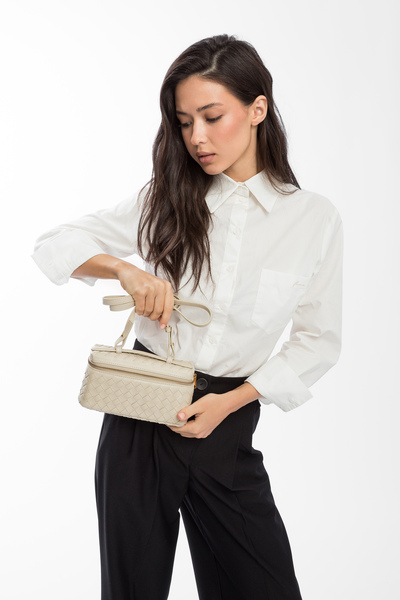 - Короткий знімний ремінь довжиною 42 см дозволяє носити сумку в руці або на передпліччі.