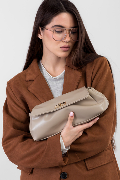 • Сумка жіноча з еко-шкіри SYM-10354 Світло-бежевий — елегантний аксесуар, що поєднує в собі стиль, практичність та екологічність.