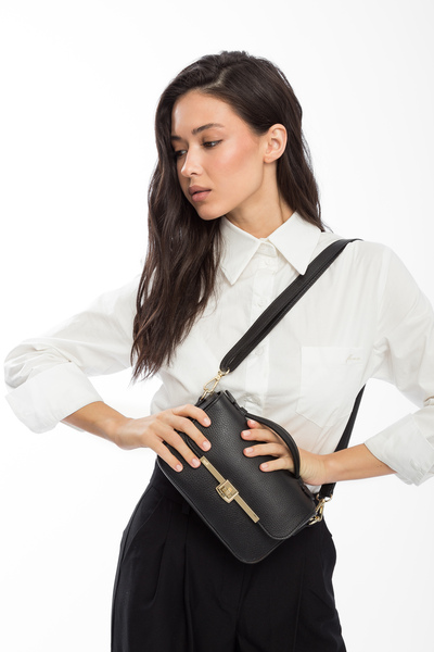 - Оснащена незнімним плечовим ременем, що забезпечує комфортне носіння як на плечі, так і через плече.