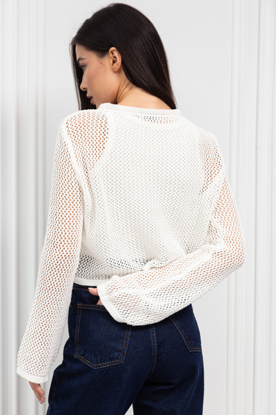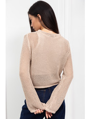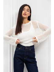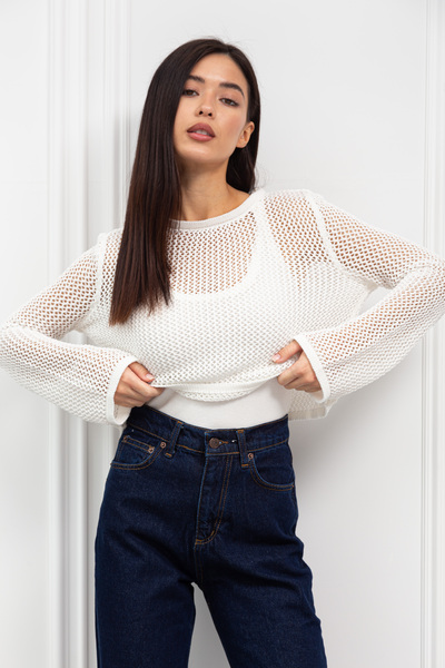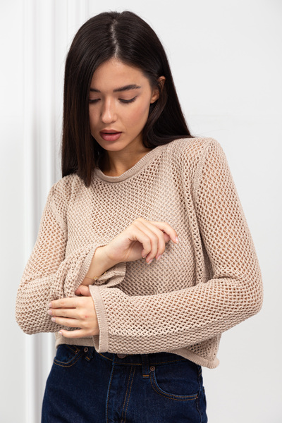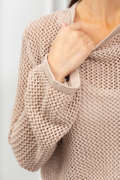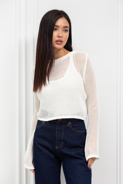 Трендовий светр в сіточку, який ідеально підійде для образів на теплу осінь. Таку модель можна сміливо поєднувати не лише з джинсами, а й з більш класичними штанами та спідницями.