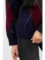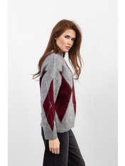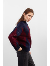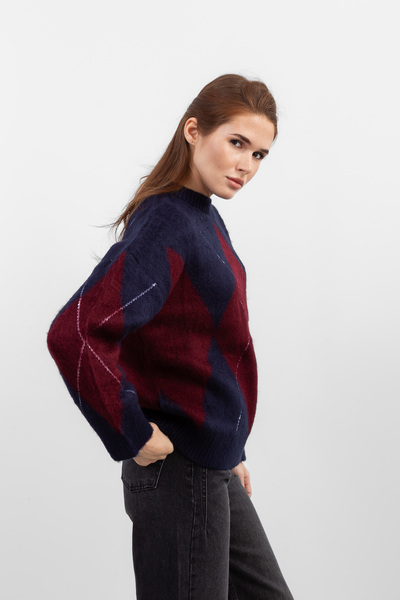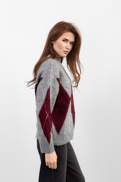 - Універсальний розмір (one size) робить його зручним вибором для більшості фігур, а насичений коричнево-бордовий відтінок дозволяє легко комбінувати светр з іншими елементами гардеробу.