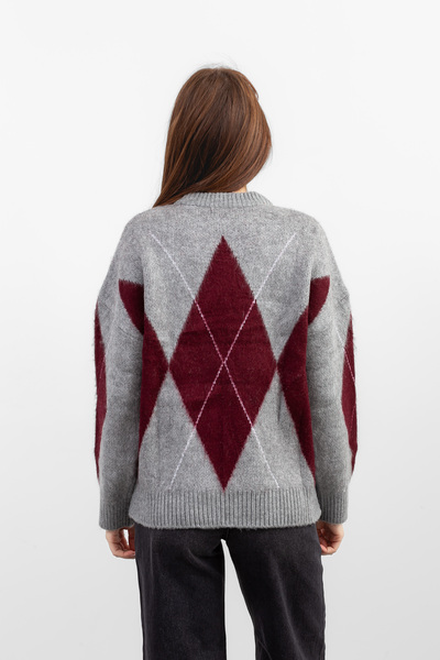 Светр прямого крою KOF-2411261 у відтінку коричнево-бордового кольору є ідеальним доповненням до вашого гардеробу, поєднуючи в собі стиль та комфорт. Виготовлений з високоякісної пряжі, що складається з 50% вовни та 50% акрилу, він забезпечує неперевершене тепло та м'якість, роблячи його незамінним для прохолодної погоди.
