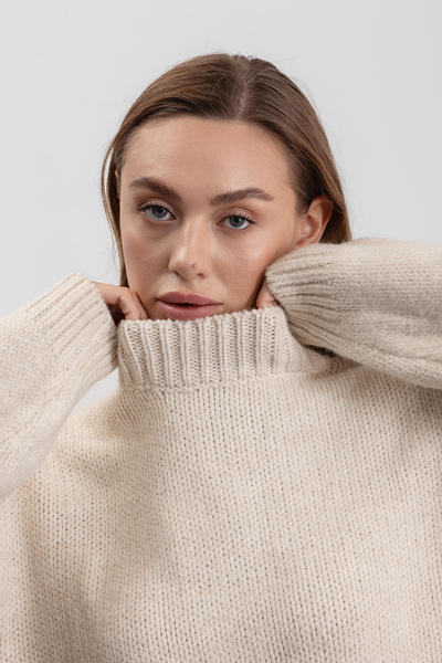 - Завдяки вільному крою, светр вдало приховує можливі недоліки фігури, роблячи образ більш витонченим.
